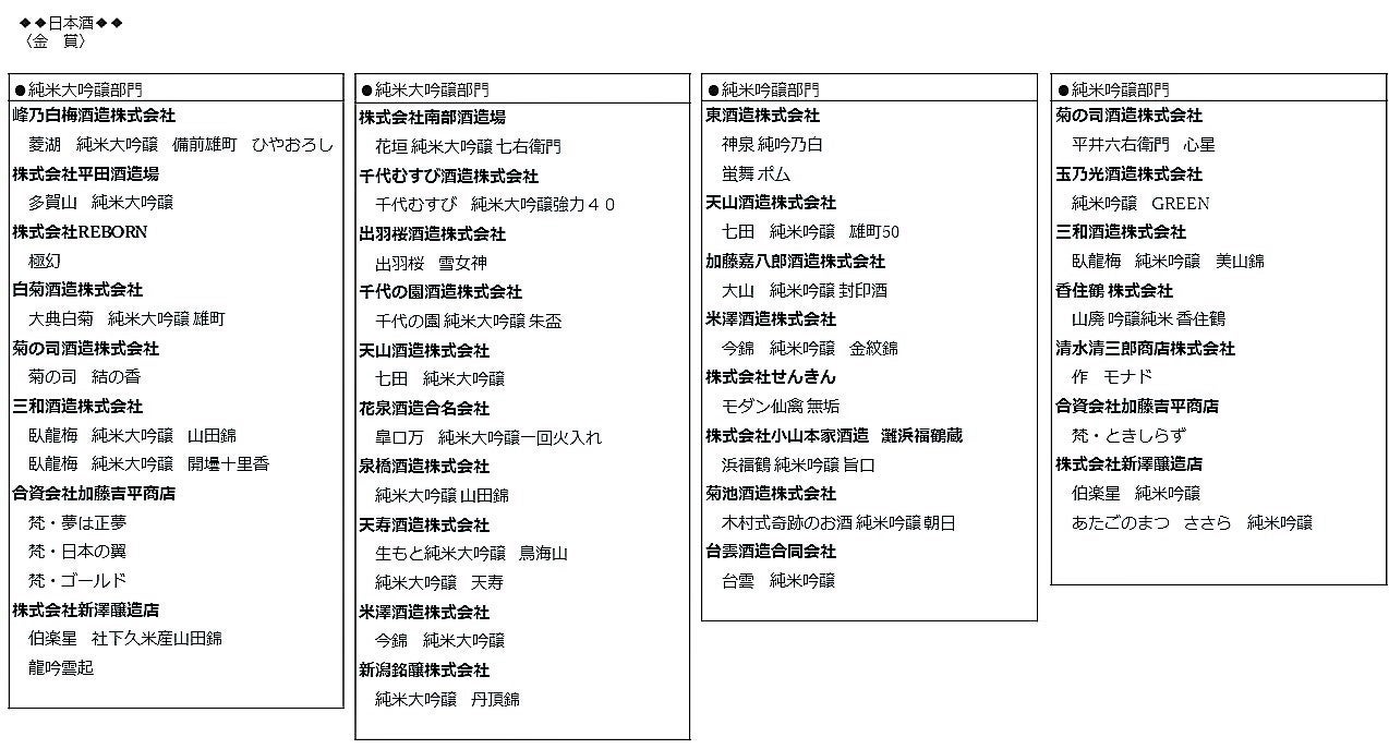 ◆具体的な受賞銘柄◆ ※記載は順不同です。