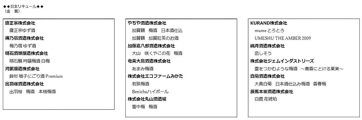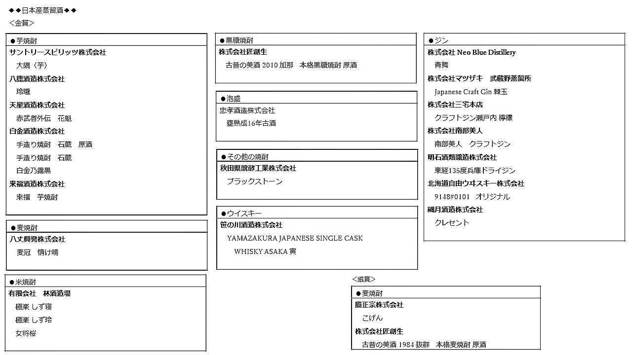 2019年には、日本産リキュールを含め、31社65アイテムが出品、うち21アイテムが金賞入賞。