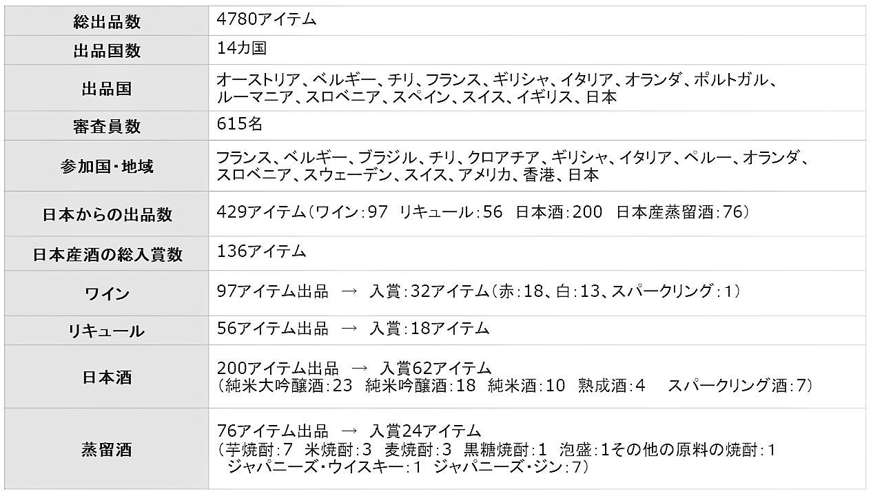 2021年には、日本から312アイテム。日本ワイン87アイテム、日本リキュール47アイテム、日本酒178アイテムの出品。104銘柄が入賞。女性ワイン専門家がジャッジする日本産酒という点では、今最も注目される国際酒類コンクールとなりました。