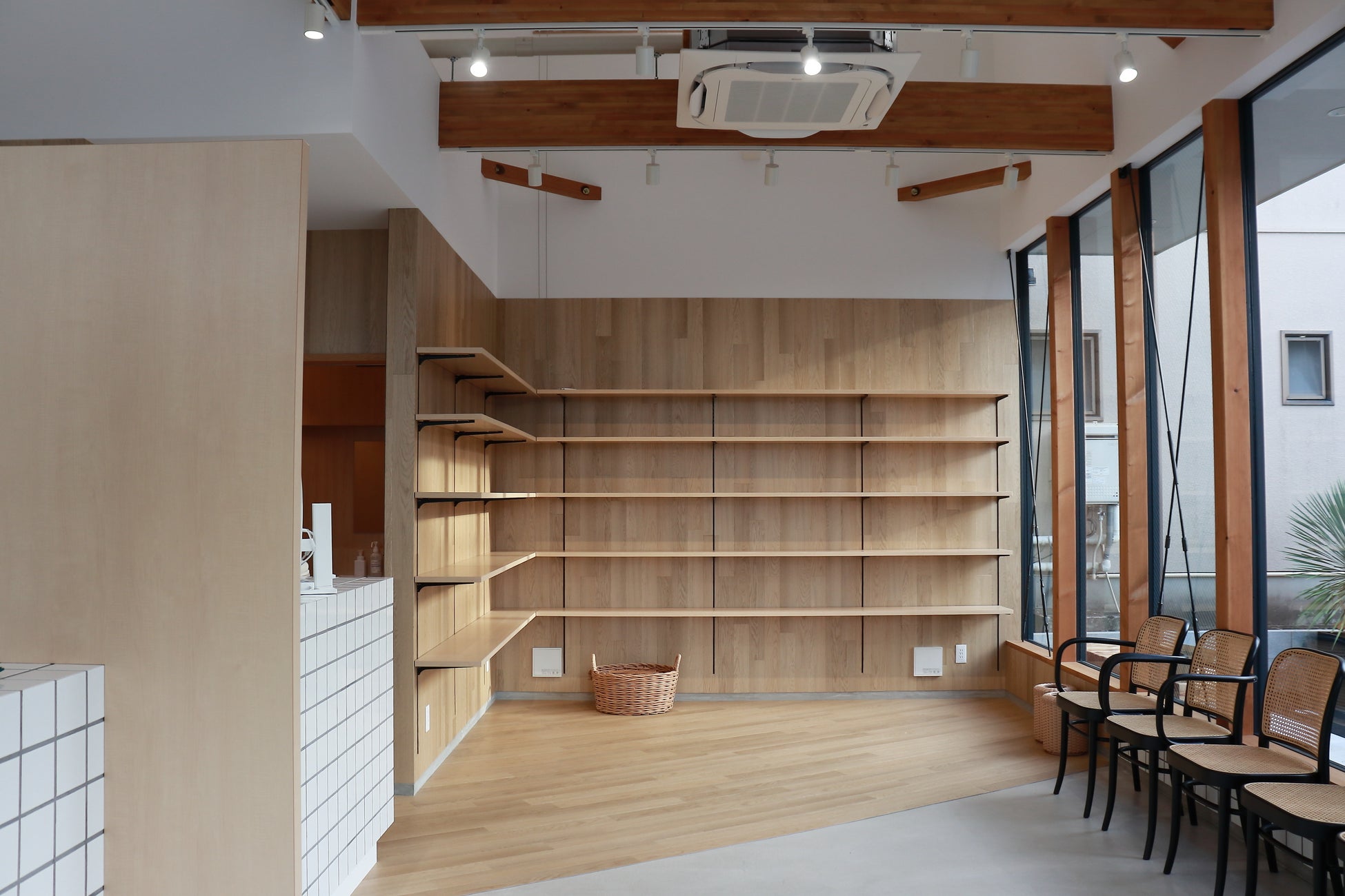 店内は、洗練されていながらも、どこか懐かしさがあるデザインを意識しております。薬剤師が店頭に立ち地域の方が健康について気軽に相談できる場であった“昔の薬局らしさ”と、プライバシーや個人を尊重する“現代の薬局らしさ”の融合により、今だからこそつくれる薬局が完成しました。