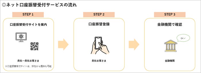 ネット口座振替受付サービスとは、紙の口座振替依頼書に押印することなく、パソコンやスマホで口座振替登録を行うことができるサービスです。キャッシュレス決済や非対面手続きが増加する中、ここ数年で大変多くの法人・個人事業主の皆さま(年間登録受付件数:前年比47万件増)にご導入いただいております。