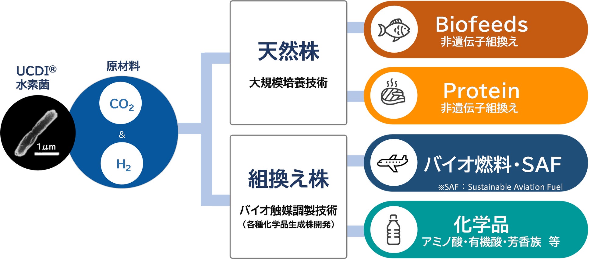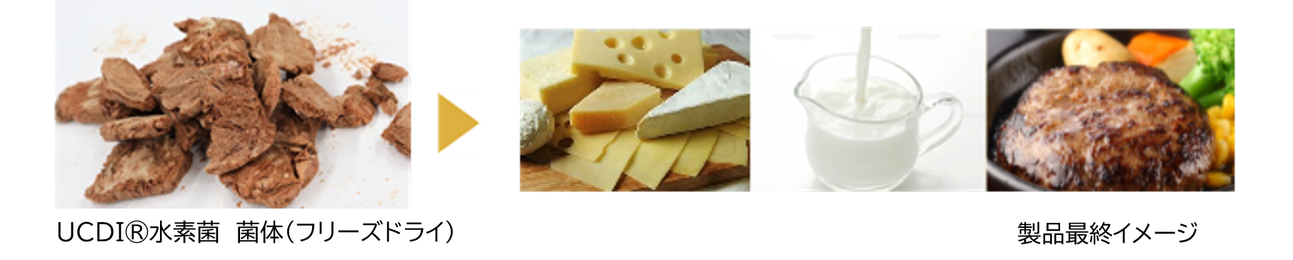注1:農林水産省中小企業イノベーション創出推進事業(フェーズ3基金)の第1回公募に 「CO₂を原料としたUCDI®水素菌由来の代替タンパク素原料の製造及び食品開発」という事業計画で採択。