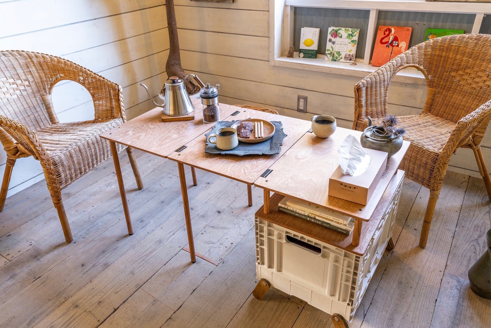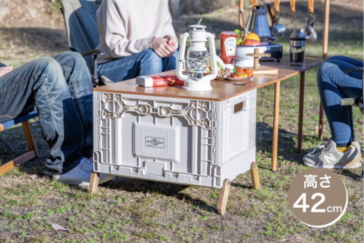 ②折りたたみボックスとテーブルが一体化!アウトドアでもインテリアにも使えるオシャレなデザイン性!