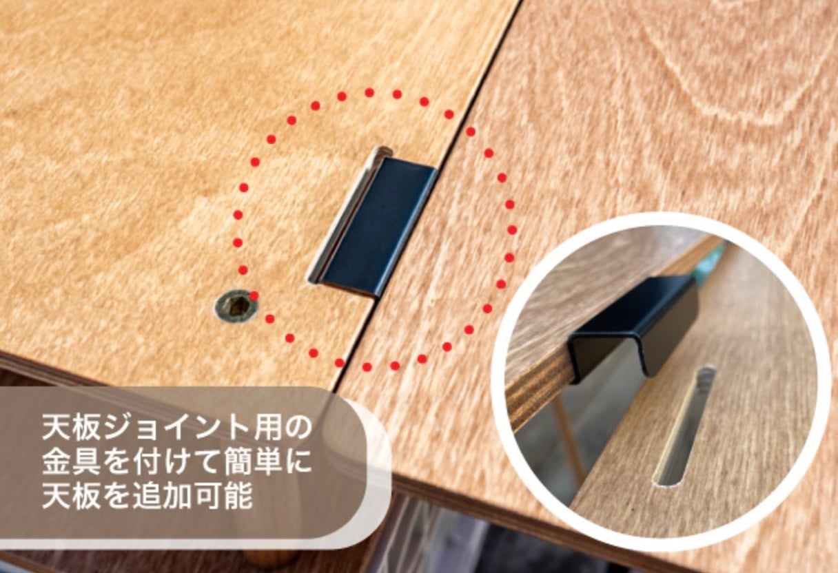 設置方法はとても簡単です。天板にジョイント金具が装着されているので、スリッドに金具を引っ掛けて簡単に連結できます。