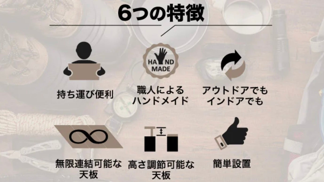 ③ハンドメイドのこだわりの質感!軽量化した天板は持ち運びも楽々!テーブルの高さ調整も可能に!