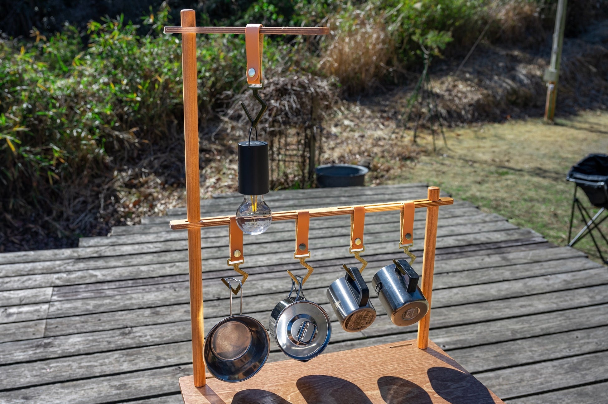 レイアウト変更自在な便利なハンガーラックを付属したリターンもご用意しました。吊り下げて見せるディスプレイ収納はアウトドアでの収納にとっても重宝します。