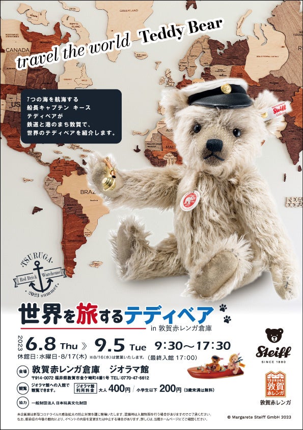 夏の企画展「シュタイフ・世界を旅するテディベアin敦賀赤レンガ倉庫」開催!