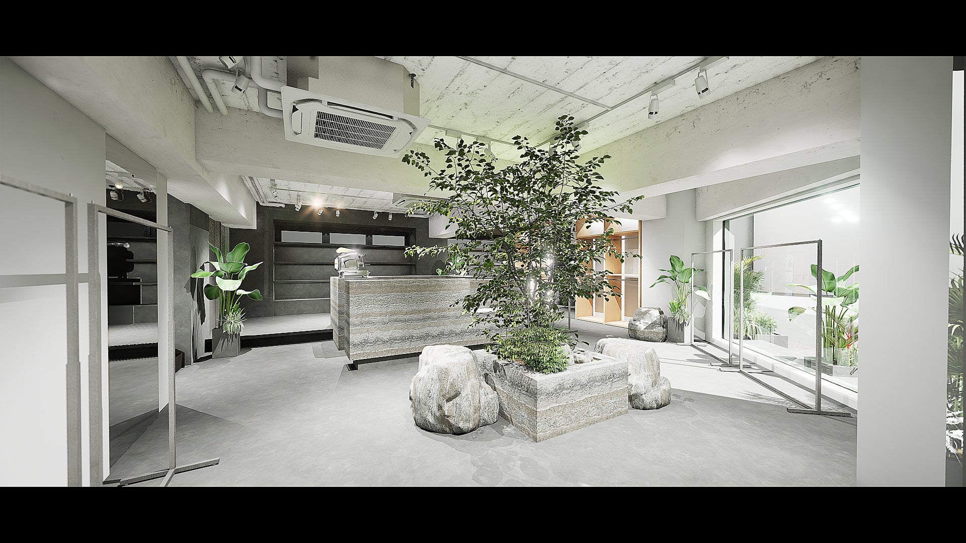 石や植物、木などの自然の素材が織りなす有機的な手触りと複雑なテクスチャー。グラフィカルなヴィジュアルコミュニケーション。マテリアルとデザインの双方からGramicciの世界観を表現しています。