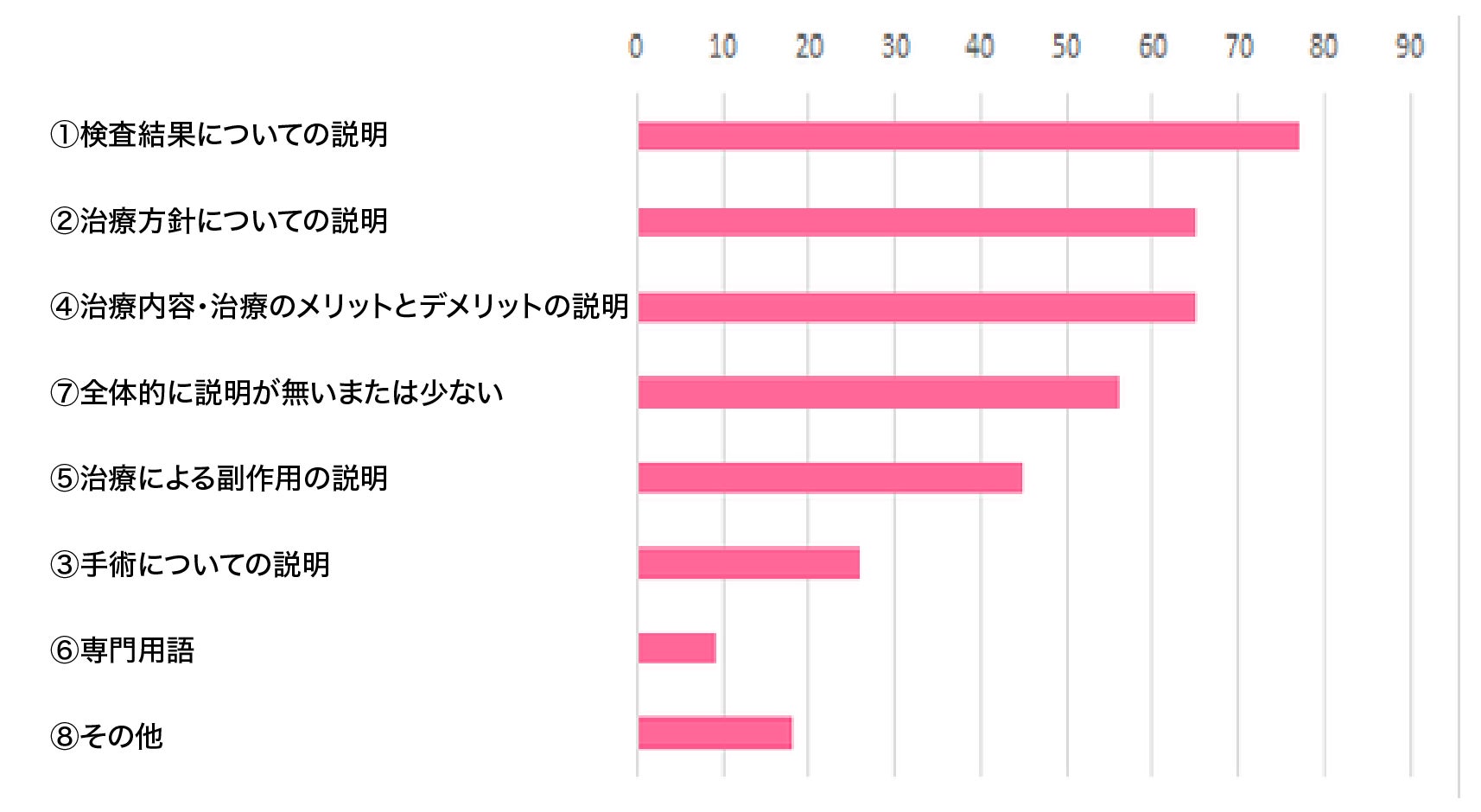 「検査結果・治療方針・治療のメリットデメリット」等の重要な説明が分かりにくいと感じているのが半数以上。
