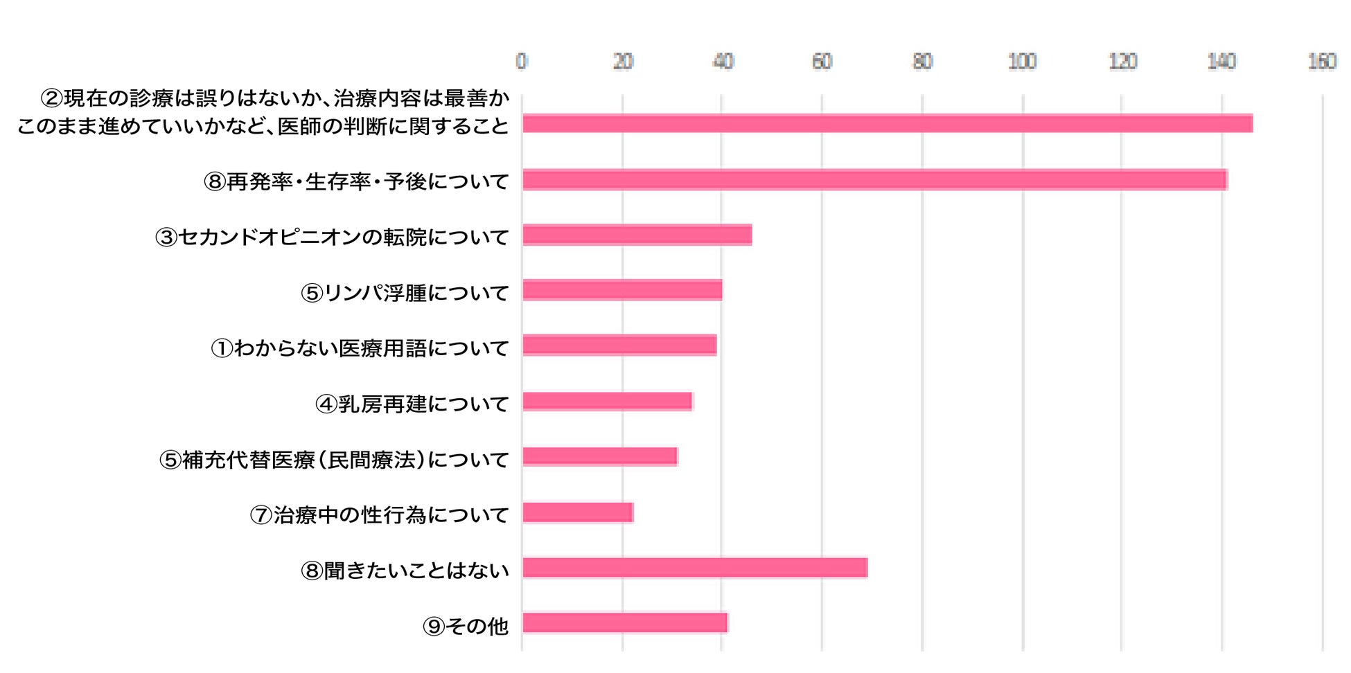 4割近くが質問しづらい項目があると回答。治療への迷いや再発、予後に関する不安などを、主治医・担当医に言えないと感じている人が多い。