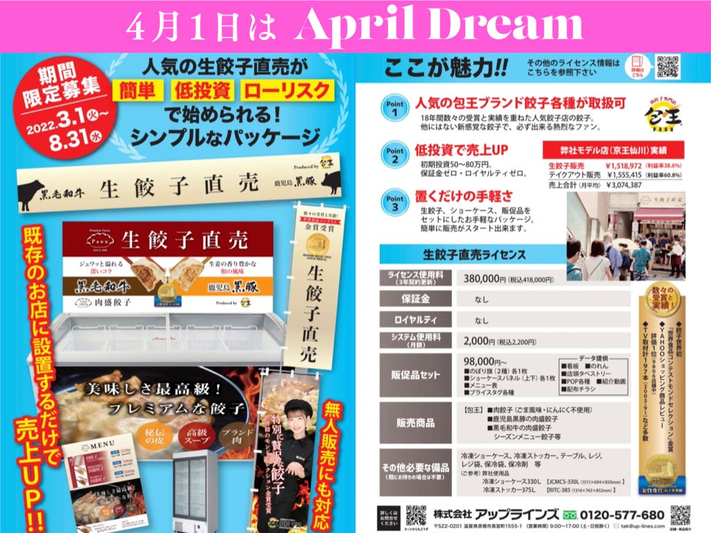 このプレスリリースは、April Dreamプロジェクトに共感し、4月1日を夢があふれる日にしようとする事業者が、やがて叶えるために発信した夢です。