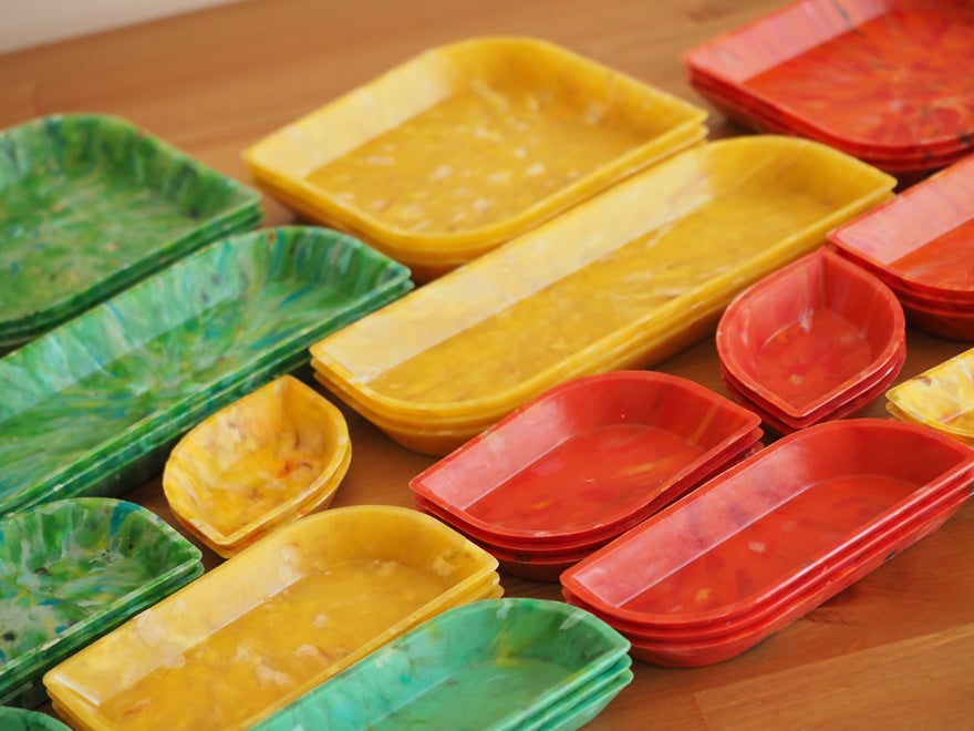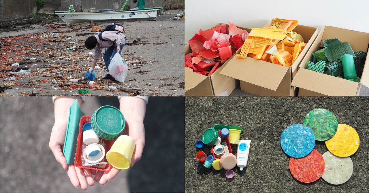材料はすべて着色など行わずに成形しています。偶然生まれる色と模様は回収された漂着ごみによって決まります。