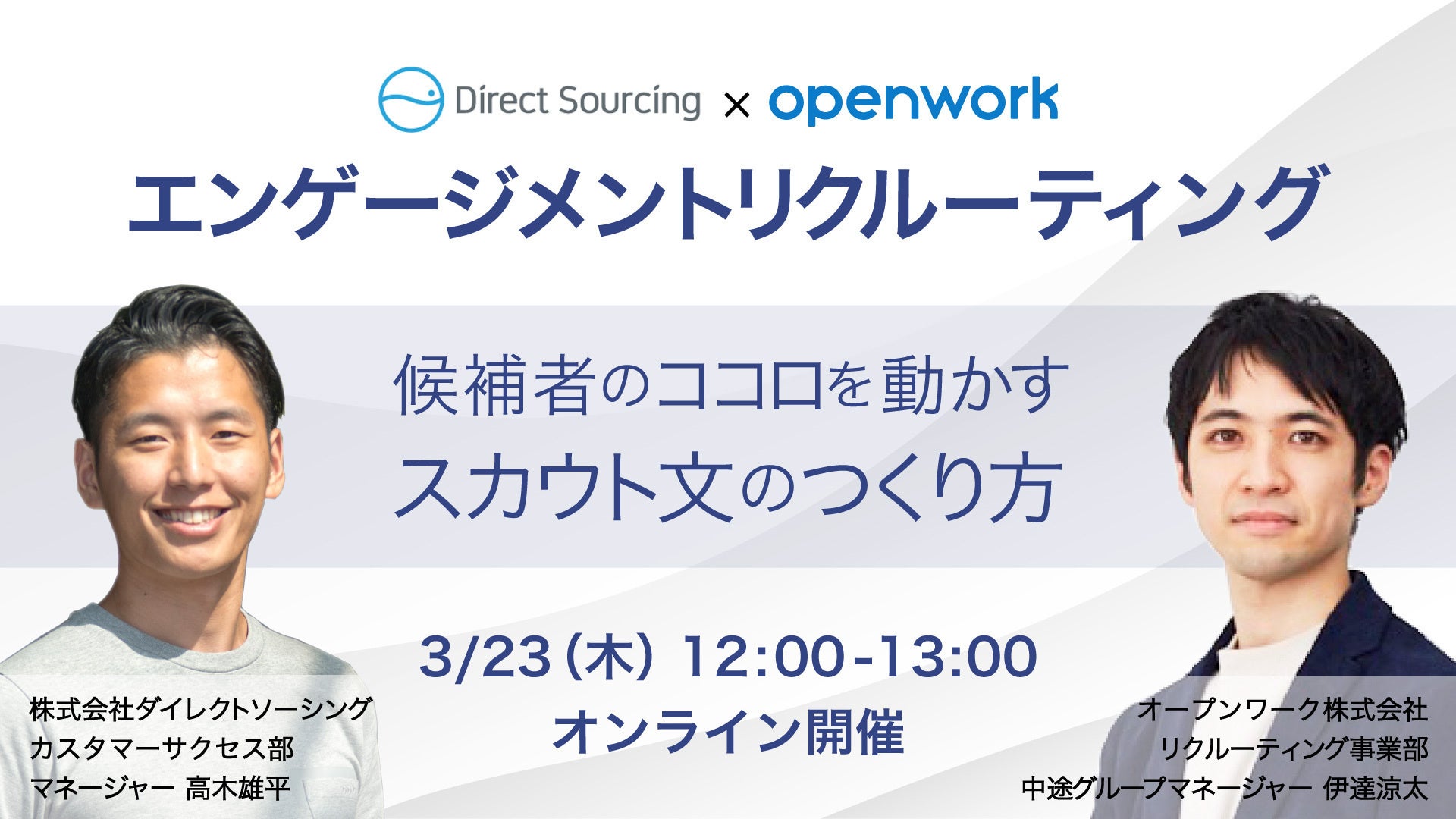 【2023/3/23開催】エンゲージメントリクルーティング 〜候補者のココロを動かすスカウト文のつくり方〜ダイレクトソーシング✖️OpenWork共催対談ウェビナー