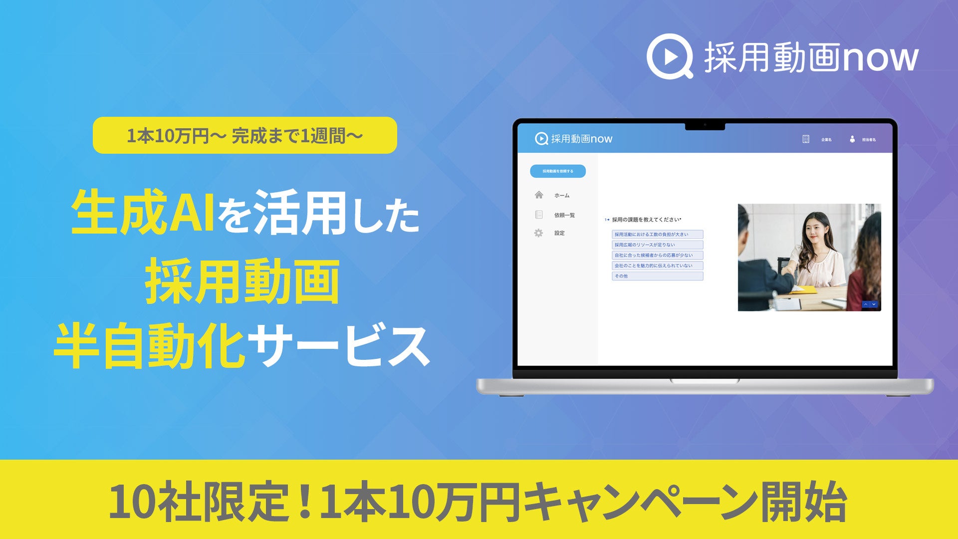 10社限定!採用動画・1本10万円キャンペーン実施中