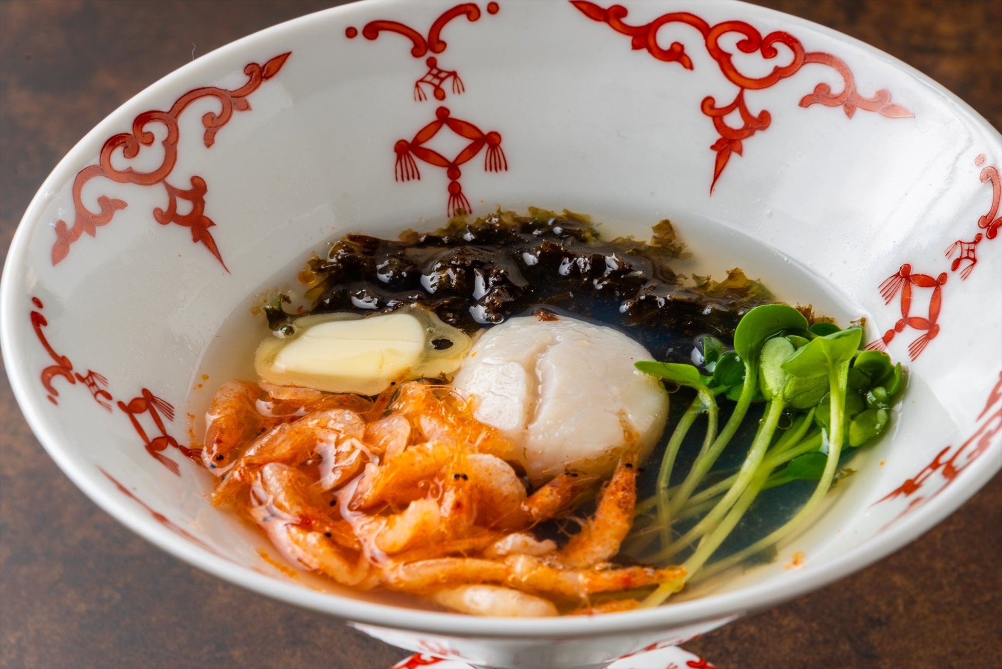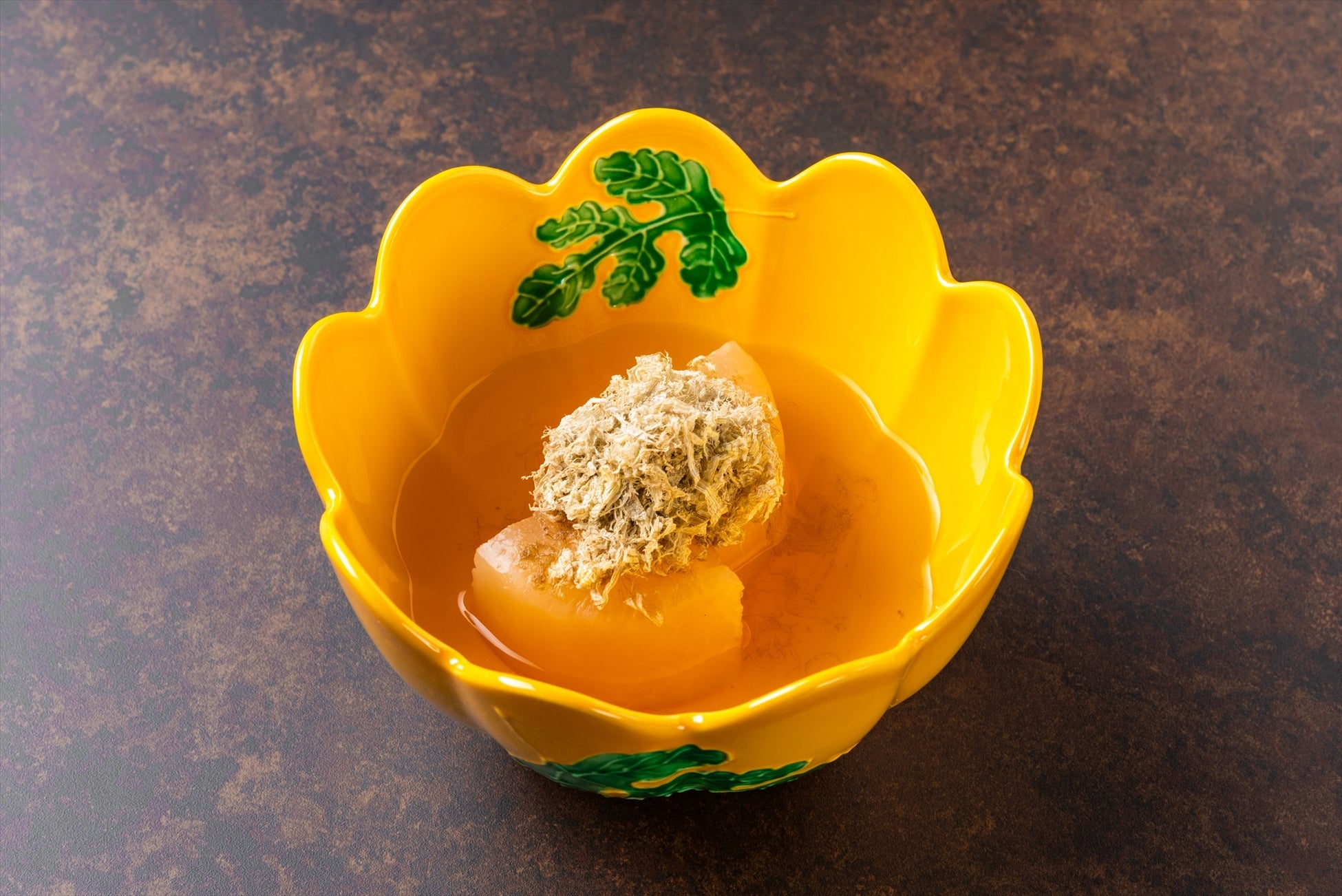 名物料理は福岡県出身の店主である女将がこだわり抜いたおでん。飛ぶように泳ぐため脂肪分が少ないトビウオ (あご)の焼干しや昆布など数種類をブレンドし、すっきり上品な中に香ばしい香りをまとった深みのある出汁に仕 上げています。それぞれの素材の魅力を最大限に活かすために、一品ずつ別の鍋で煮て、一皿ごとに提供いたしま す。「大根とろろこんぶおでん」『濃厚半熟卵おでん』などの定番メニューから、