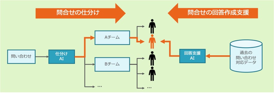① 問合せ仕分けAI :問合せの仕分け業務をAIにより自動化する