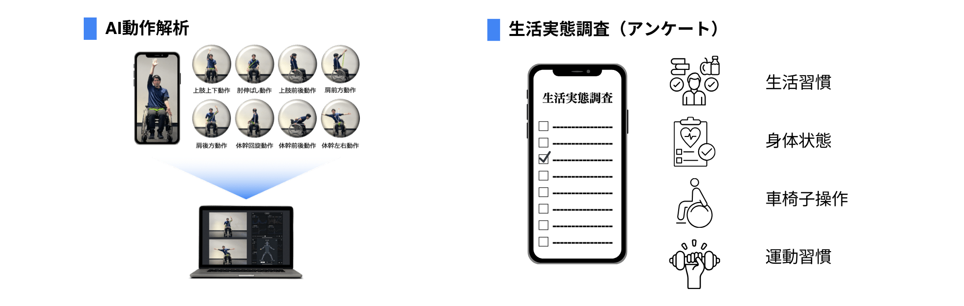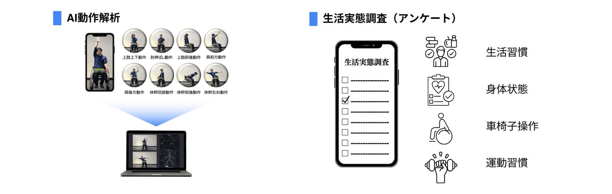 ① 動きを計測・習慣を調査: AI動作解析・生活実態調査