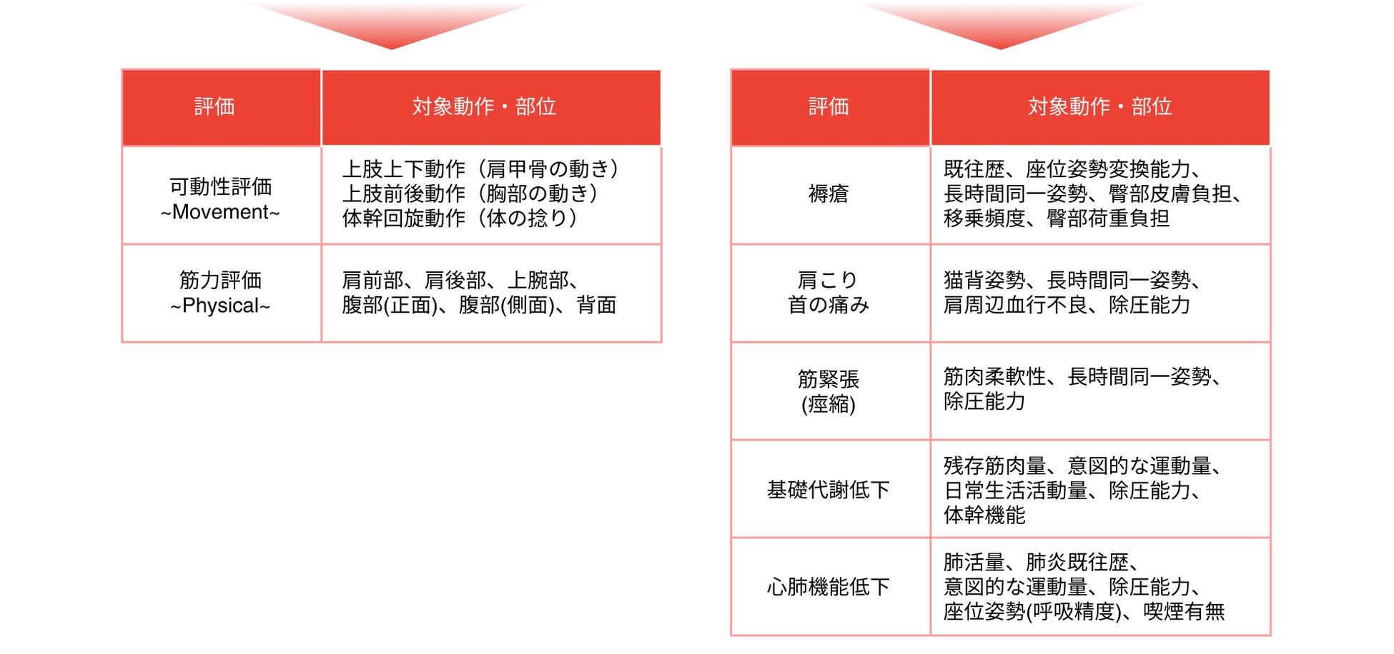 ② 体の状態を評価: 身体機能評価・二次障害リスク評価
