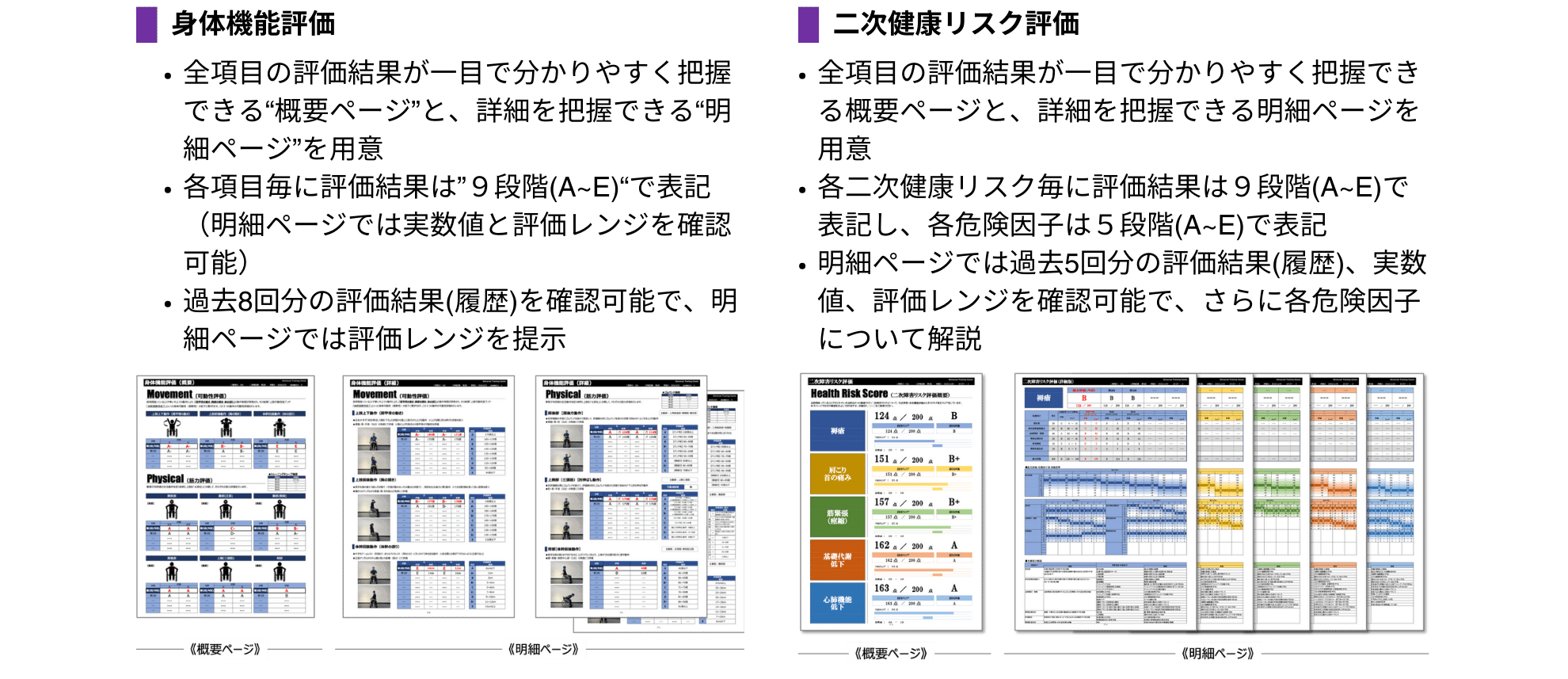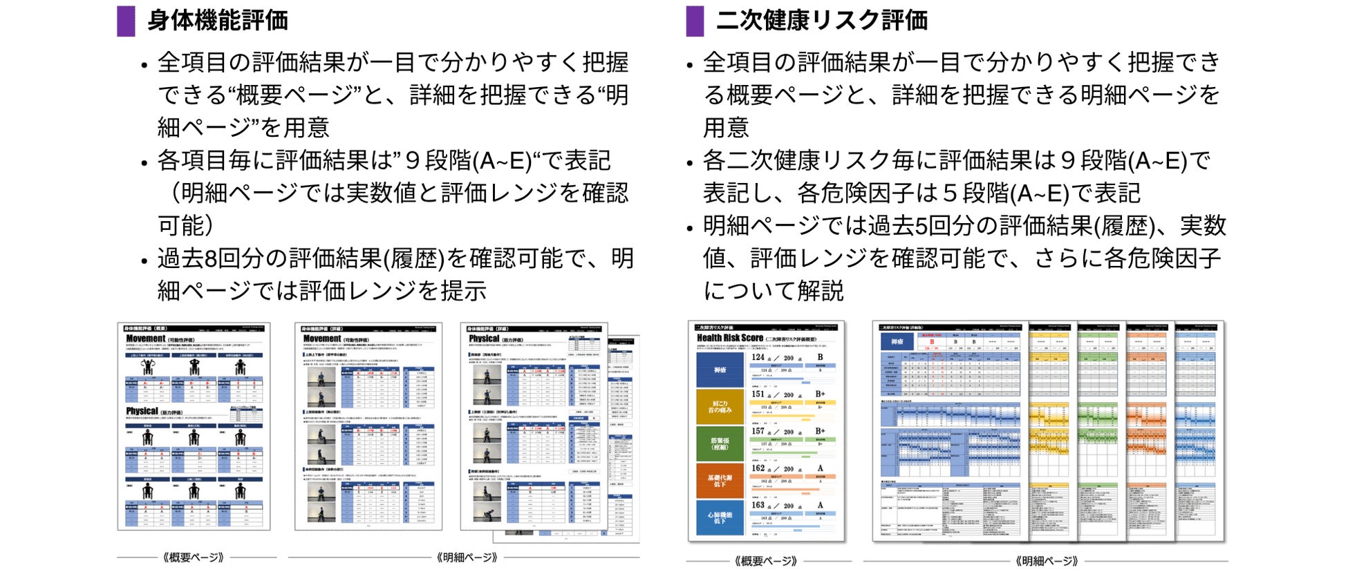 ・身体機能評価と二次健康リスク評価結果を分かりやすく把握(理解)できるレポートを作成