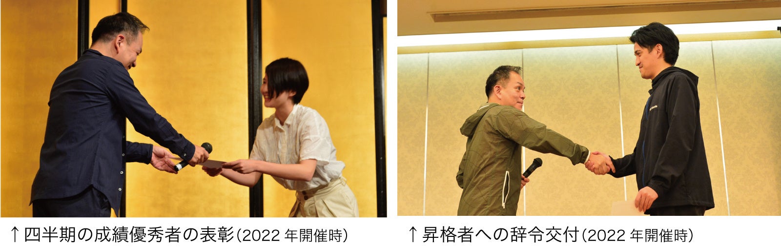 内定式は、昼間の運動会と夜の納会(四半期ごとに行う社内の恒例行事)で構成されています。内定者は運動会で社員と共に汗を流し、納会では3ヶ月間の営業成績の表彰式も体験。成績、数字、順位という現実もありのまま見ることで会社理解を深め、社会人をよりリアルにイメージすることができます。