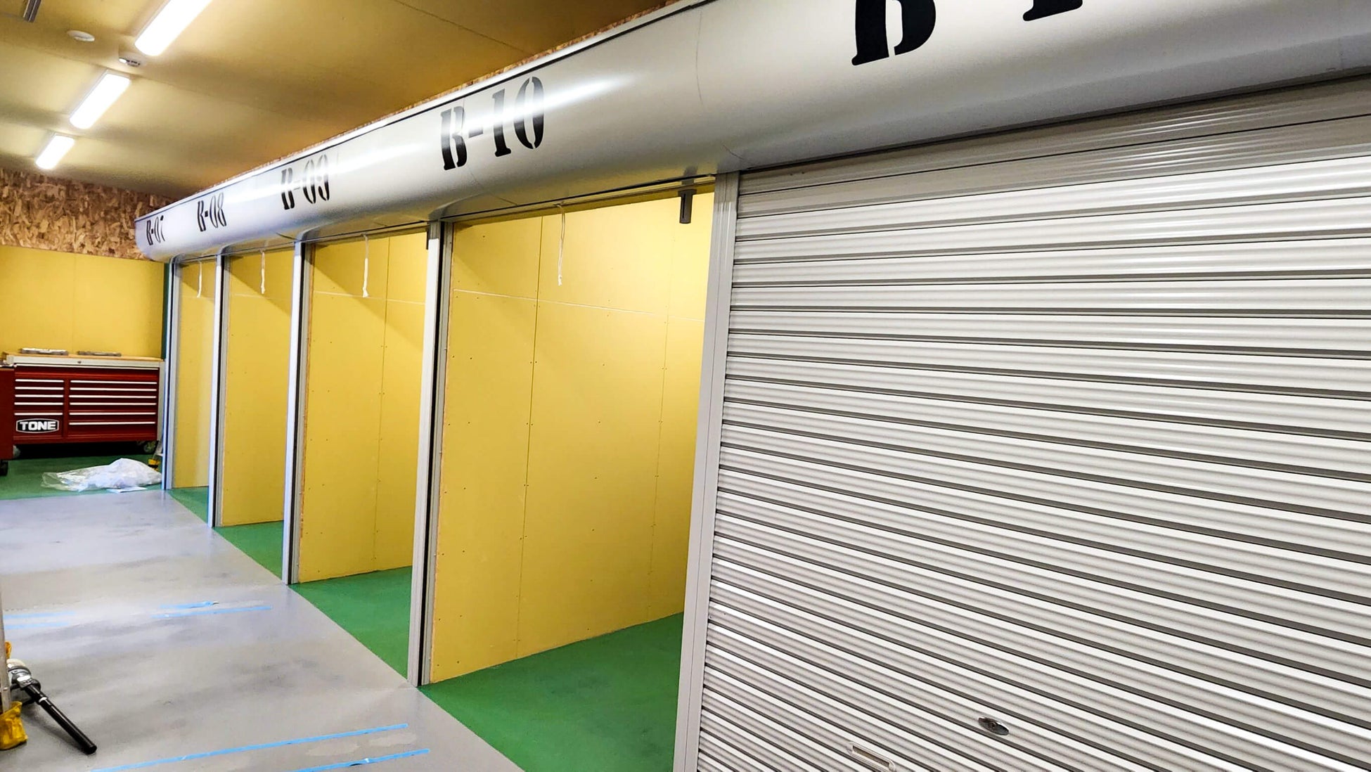 各ガレージ内にTONE製の工具を設置。