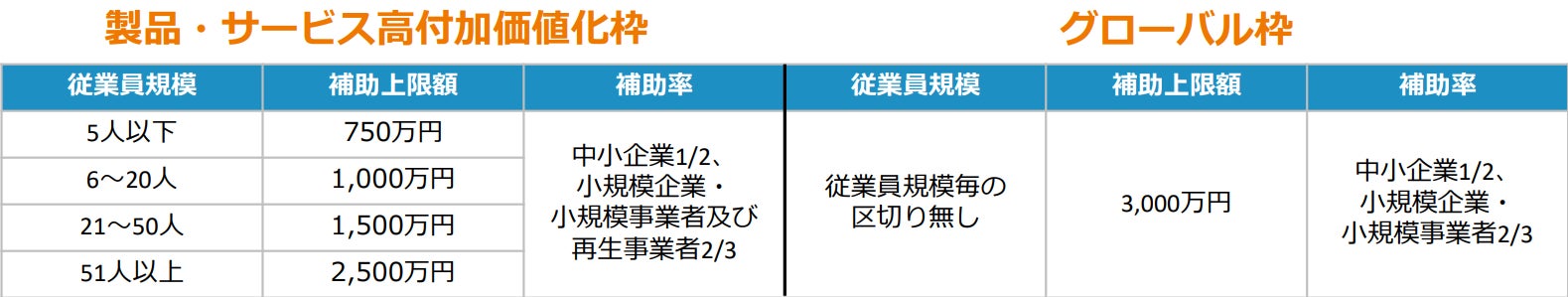 20次公募では19次公募と同等、2つの枠で支援が行われます。