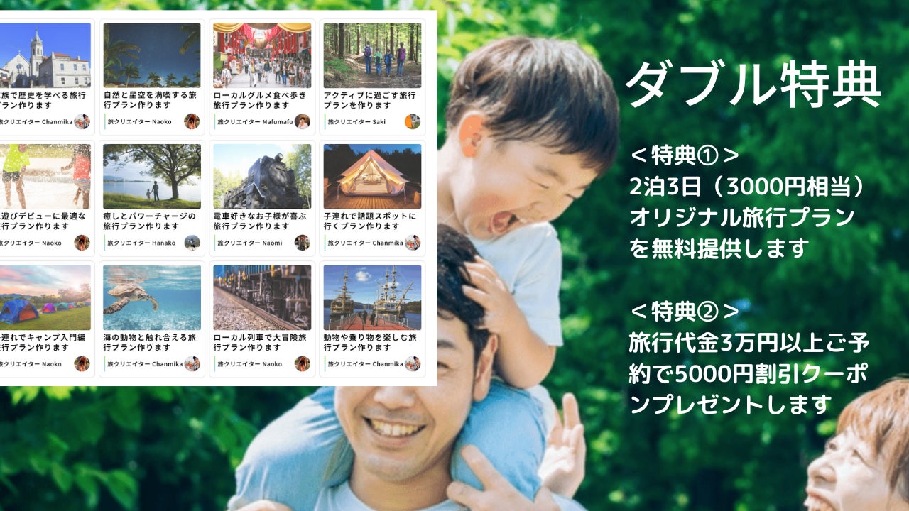 <特典①>2泊3日(3000円相当)のオリジナル旅行プランを無料提供します。