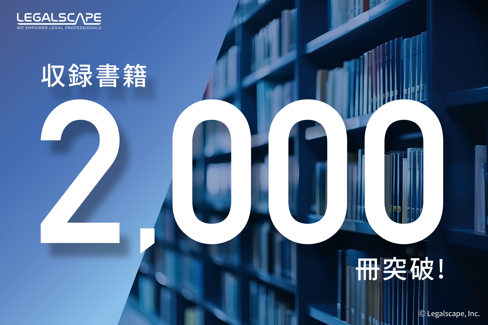 株式会社Legalscape(代表取締役:八木田 樹、以下Legalscape)は、提供する次世代型リーガルリサーチプラットフォーム「Legalscape」において、収録書籍数が2,000冊を突破いたしましたことをお知らせします。
