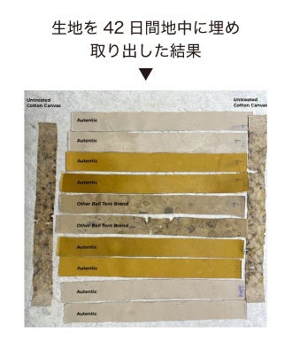 そして、テントに使用されている生地を地中に埋める検証では、Autenticテントがいかにカビが発生しにくい加工をしているかが一目瞭然です。これは、これまで国内でコットンやポリコットンのベルテントを利用され、カビへの対処に苦労されてきた事業者の方に対する解決策の一つになるのではないかと期待が高まります。