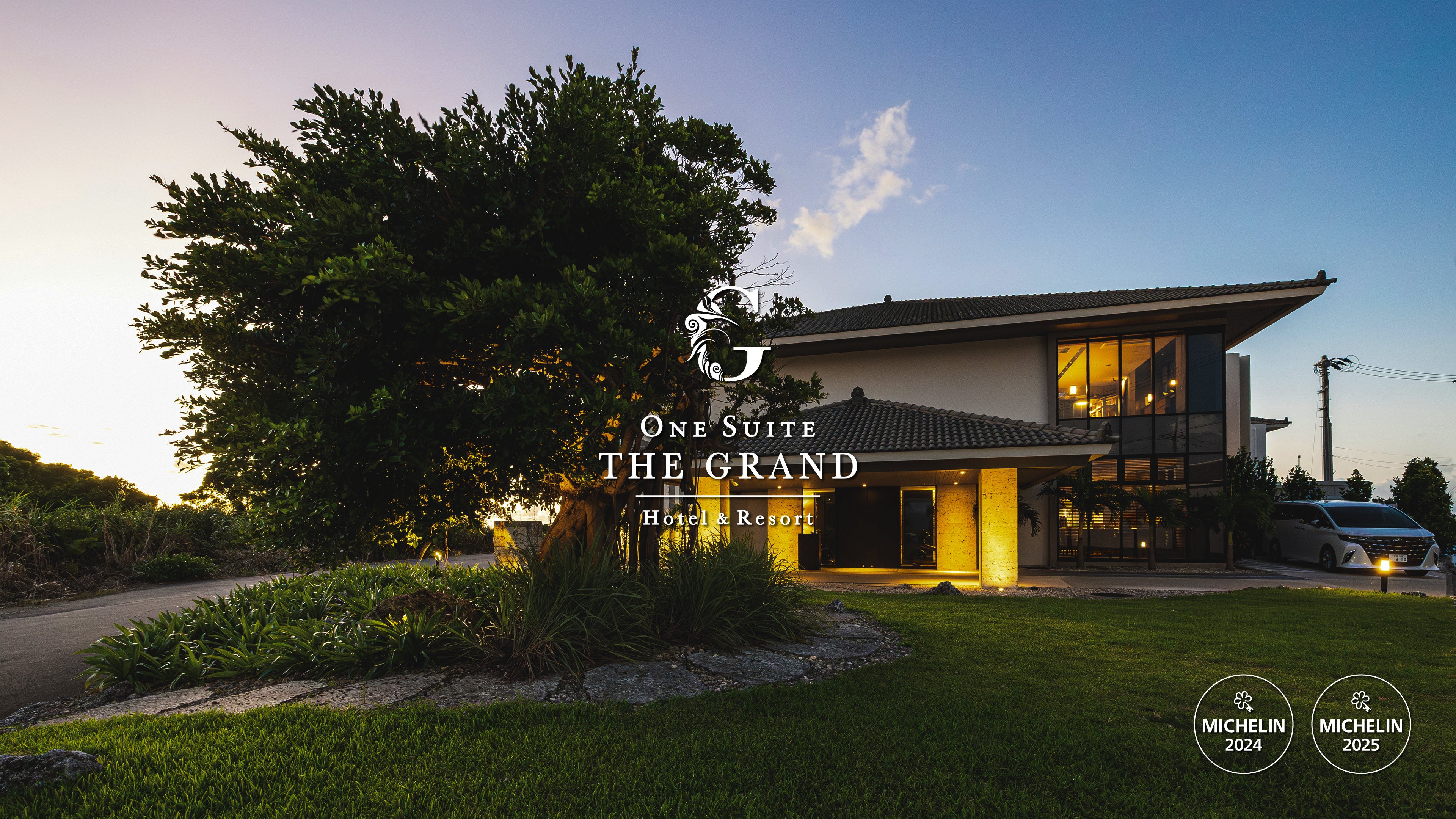 One Suite THE GRANDは、沖縄本島北部にある古宇利島の海抜約100メートルの丘の上に2021年7月に開業した、東シナ海の絶景が広がる全客室オーシャンビューのスモールラグジュアリーホテルで、ミシュランガイドの定める基準により2024年より2年連続で「1ミシュランキーホテル」に認定されました。