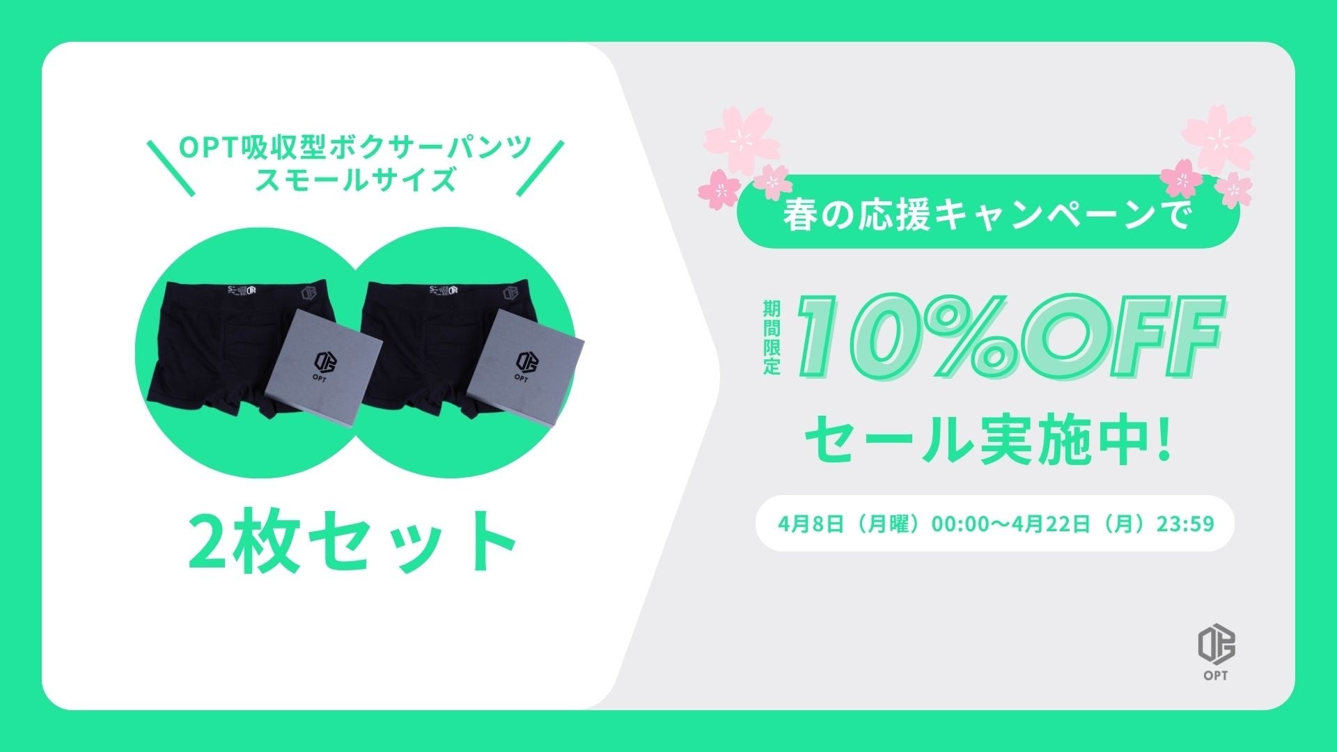 そこで、生理時にも履くことのできる『吸収型ボクサーパンツ』を販売するOPTでは、部活を頑張るユースアスリートに向けた春の応援キャンペーンを実施。キャンペーン期間中、「吸収型ボクサーパンツ スモールサイズ」を2点ご購入いただいた方は「10%OFF」」でご購入いただけます。