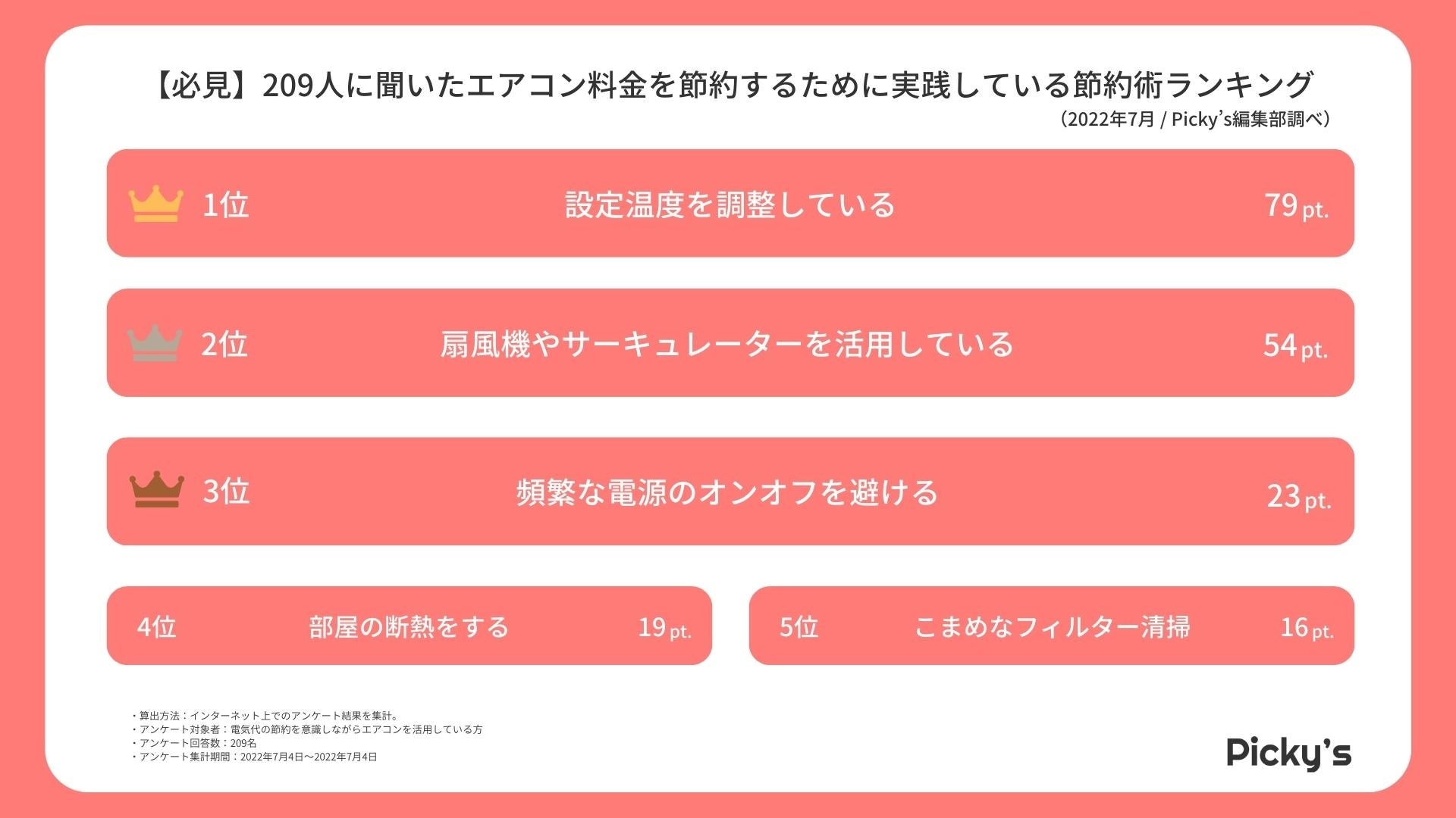 このたびPicky’s(https://rentry.jp/note/)では、エアコンの使用が本格化する季節に向けてエアコンの電気料金の節約についてインターネット上でアンケート調査を行い、ランキングを作成いたしましたので発表いたします。