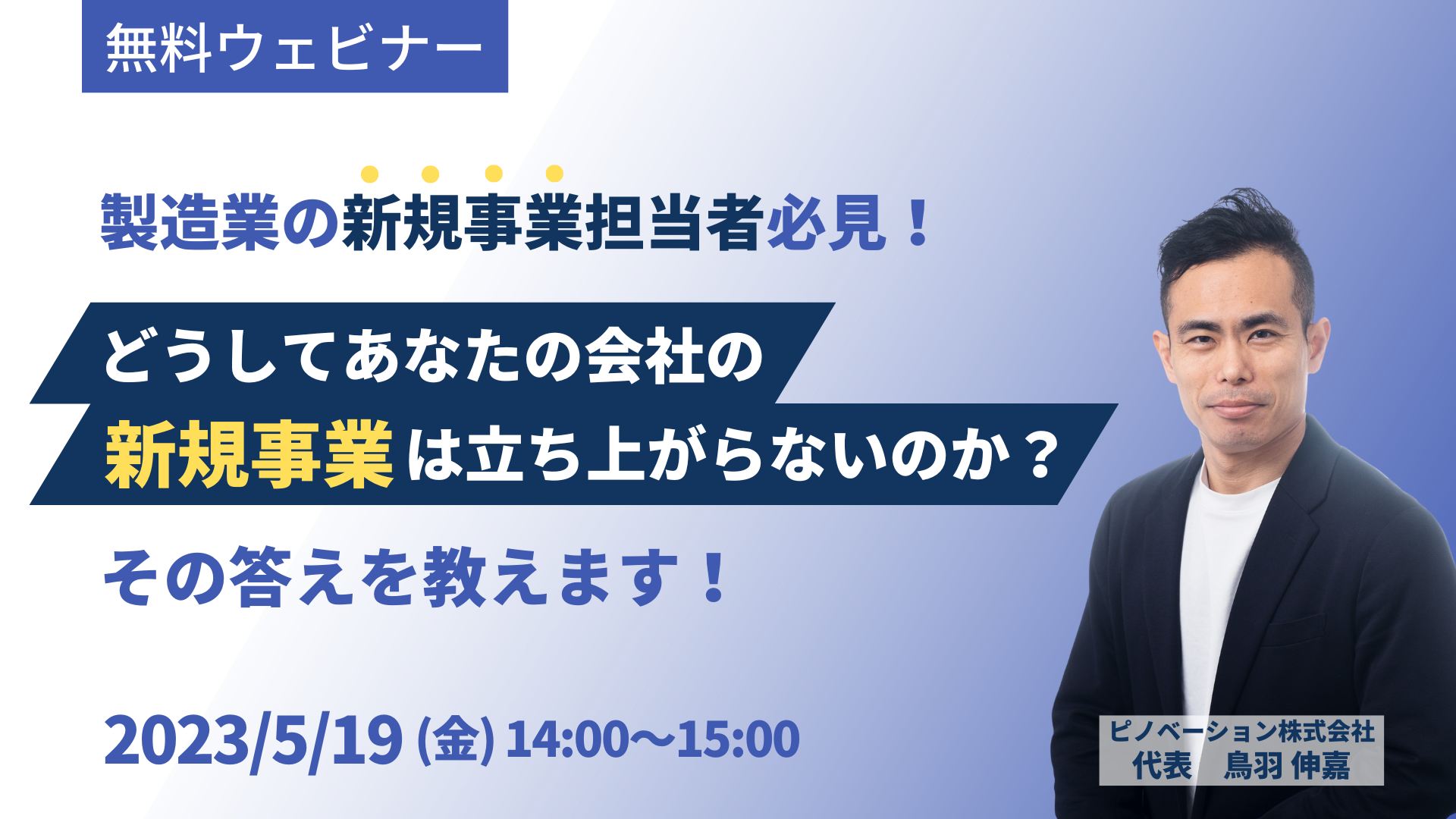 ピノベーション株式会社(名古屋市西区、代表 鳥羽伸嘉)が、新規事業開発で悩んでいる中小企業向けに、無料ウェビナーを5月19日(金)に開催します。