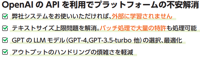 ひとつは、データが外部に流出する不安。もう一つは、テキストデータ量制限、インプット、アウトプットのコピペ操作の煩雑さなどのプラットフォーム関連のハードルです。
