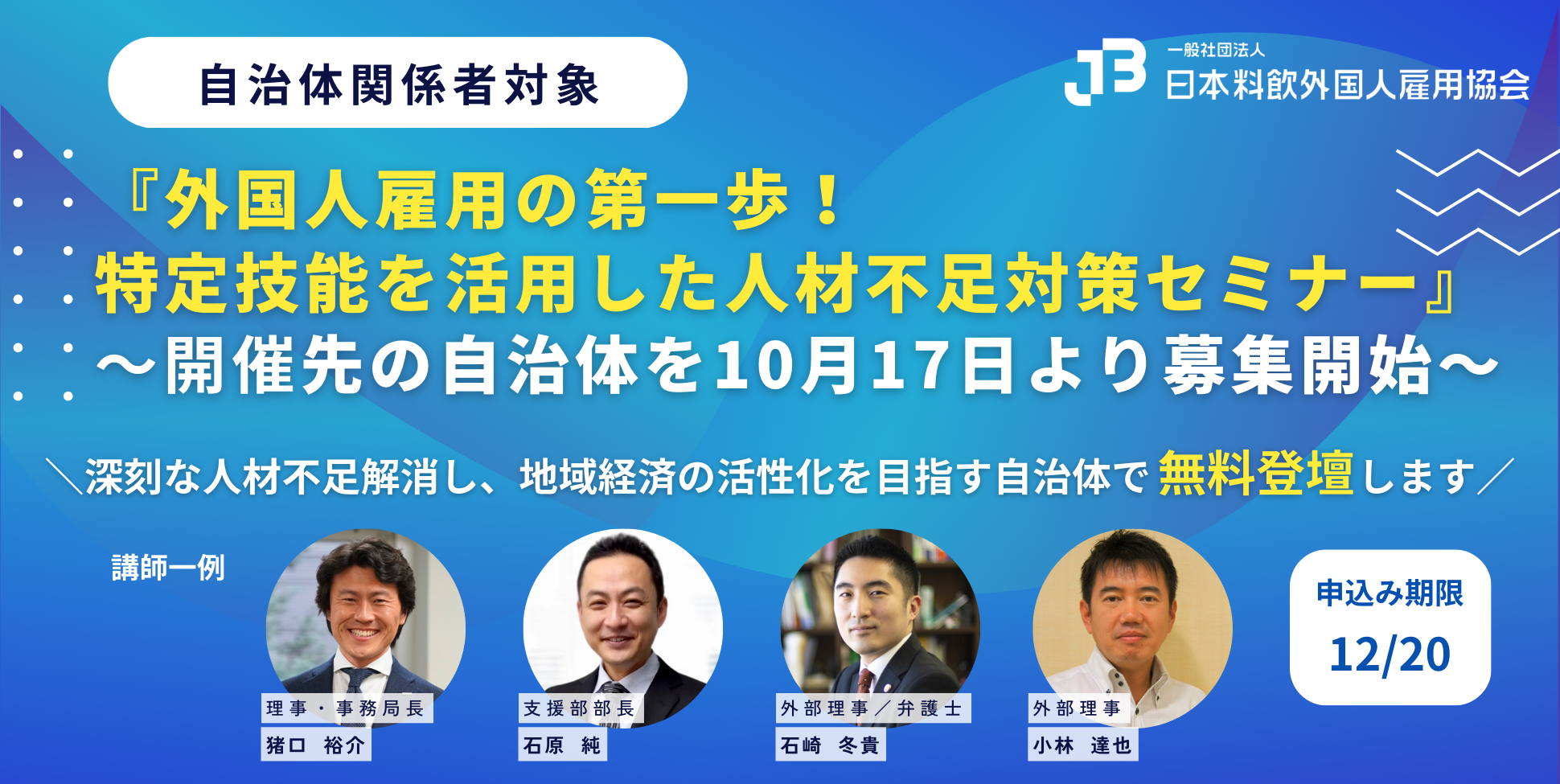 深刻な人材不足を解消し、地域経済の活性化を目指す自治体で無料登壇します