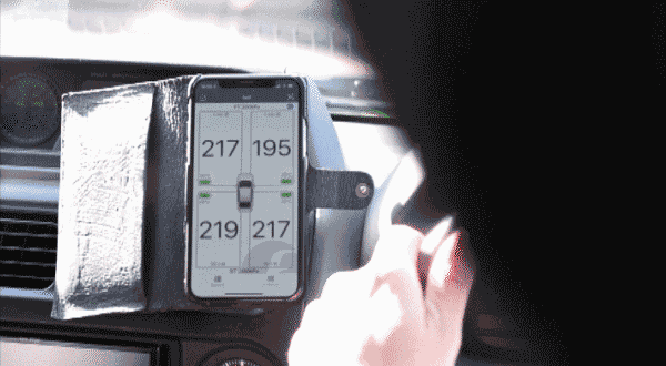 スマホでタイヤの空気圧&温度を秒間隔でモニタリングできる装置です。