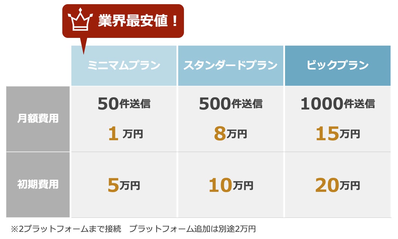 オムニデータバンクは集めて、分析して、送る、のシンプル機能に特化しています。そのためファーストパーティーデータ活用サービスを低価格で提供しています。