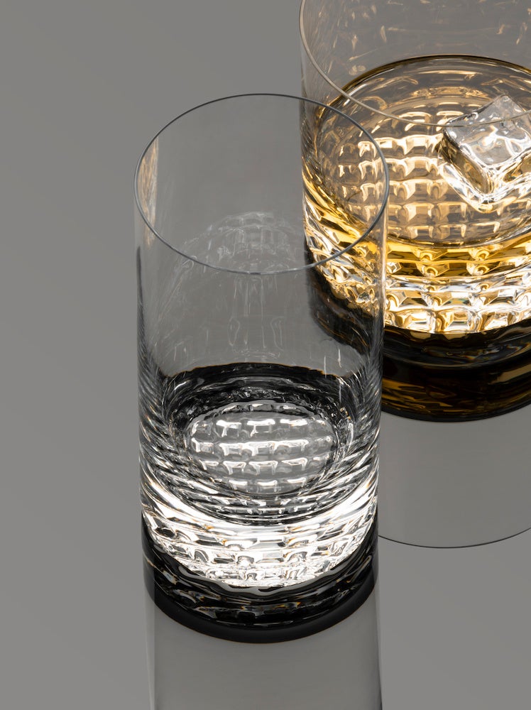 チェス盤の特徴的なパターンがグラスの底部に立体的に浮かび上がる、重厚感と上品さを併せ持つタンブラーシリーズ“Chess”(チェス)。光やドリンクの色により生まれる独創的な表情は、遊び心溢れるバーの雰囲気を作り出します。琥珀色のウイスキー、キューバ・リブレのようなクラシックなカクテルのほかソフトドリンクなどとも相性のいい、ウイスキー、ロングドリンク、オールラウンド3種のサイズでの展開です。