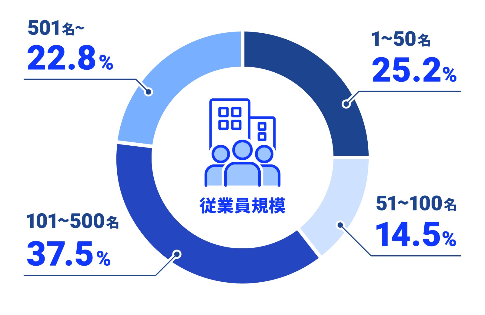 担当者への取次にムダが生じやすい101名以上の企業での導入が6割を超えていますが、受付人員をアサインすることによるコスト負担の大きい小規模事業者にも広く導入されています。