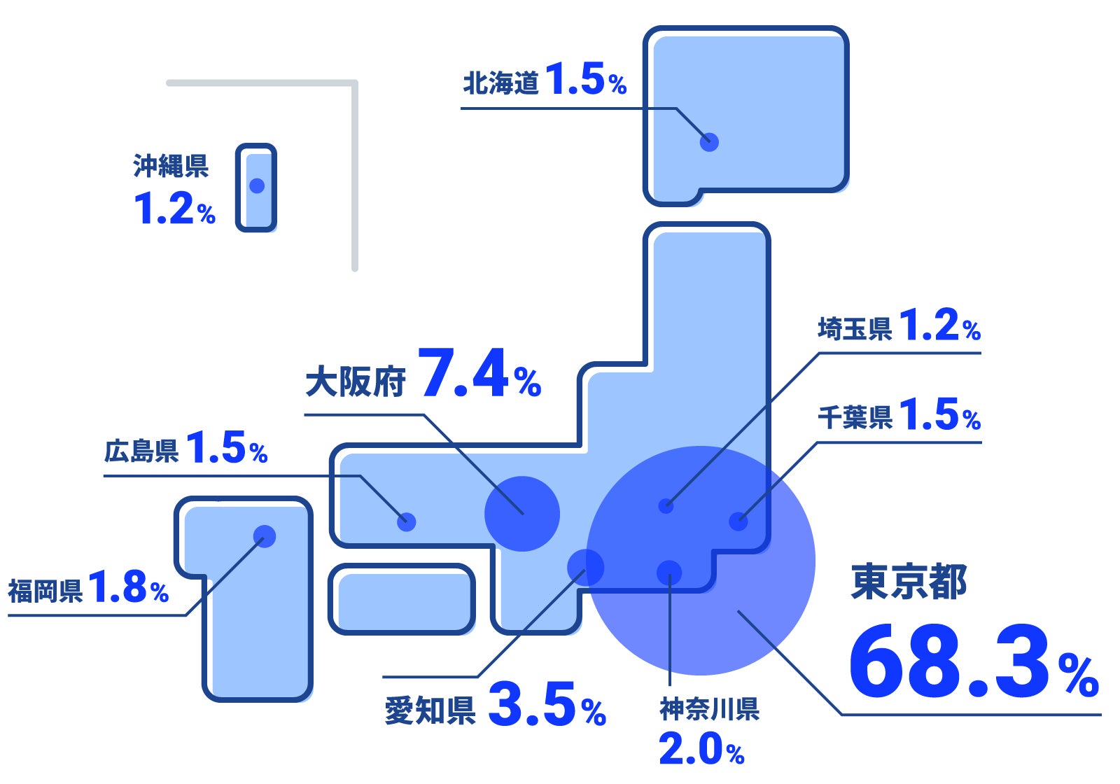 事業者数が最も多い東京を含む関東圏をはじめ、全国各地の企業でご活用いただいています。