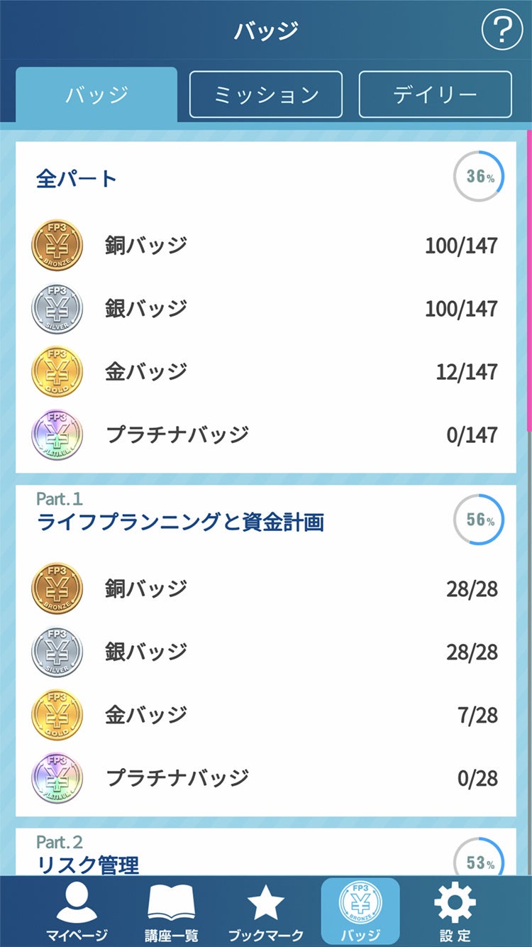 本アプリでは、FP3級の試験範囲に合わせた6つの分野を学習できます。1つだけ購入することも可能ですので、知識として興味のある分野だけを学習することもできます。
