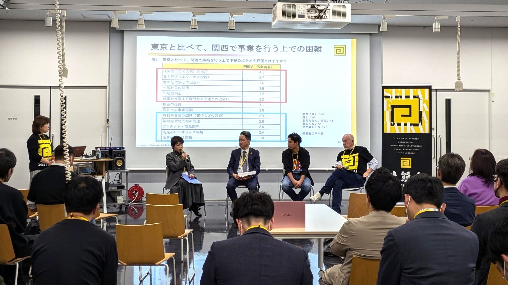 生態会は、Xport(大阪商工会議所)と共催で、2024年11月27日に報告会を開催しました。大阪府 政策企画部 成長戦略局長 池田 純子氏、株式会社大阪取引所 代表取締役社長 横山隆介氏、株式会社Lean on Me 代表取締役 志村駿介氏をゲストに迎え、生態会の理事長アレン・マイナーと調査結果について、語り合いました。東京に比べて関西で事業を行うことの困難について、どのように解消に向けて動いているかについて、大阪府や大阪取引所から取り組みを紹介しました。