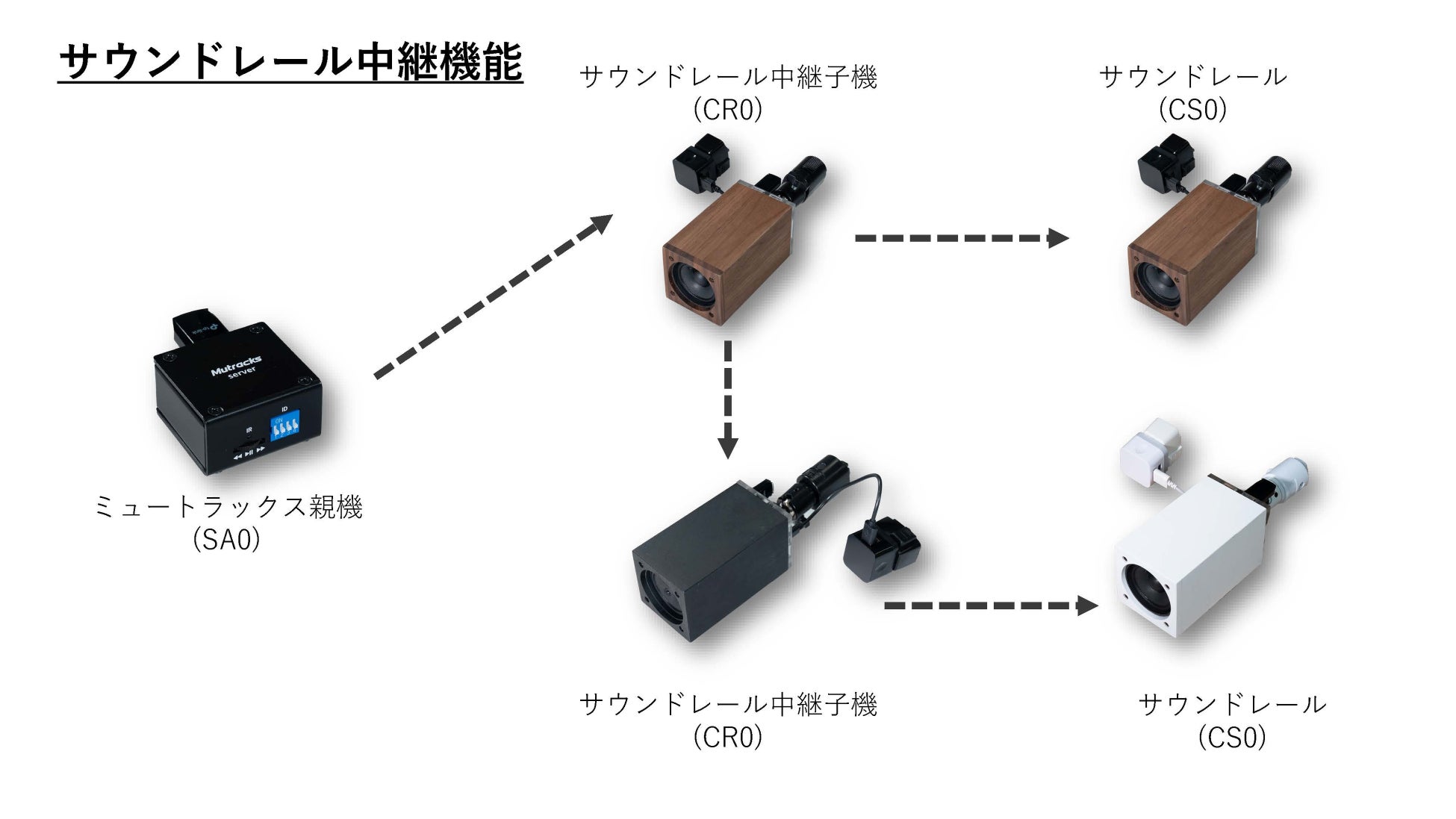 また中継通信にも対応したSound Rail(SR-CR0)を使用することで、設置環境の制約を受けにくく、レイアウトの自由度が大きく向上いたします。