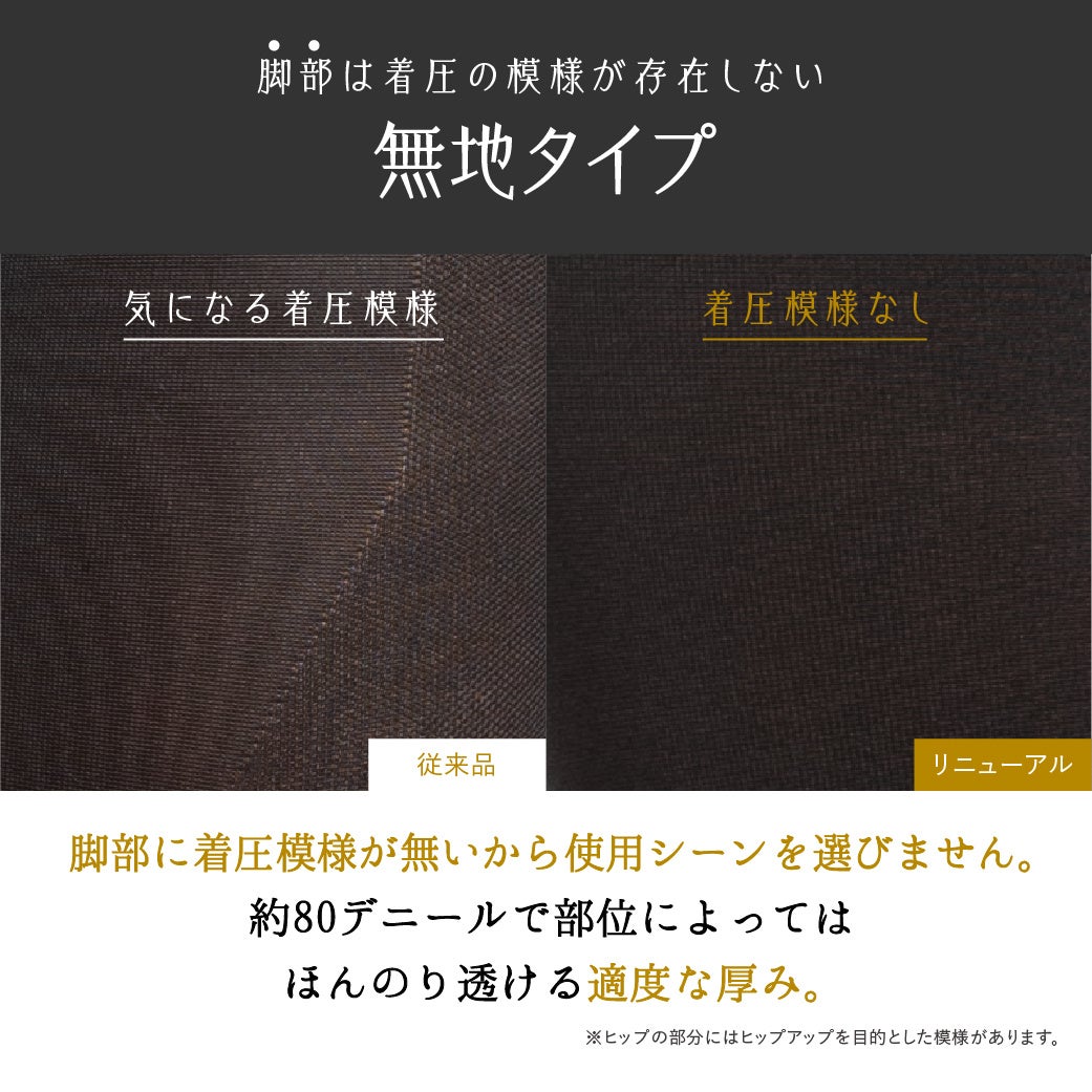 今回のリニューアルで、脚部から着圧模様が完全に無くなりました。