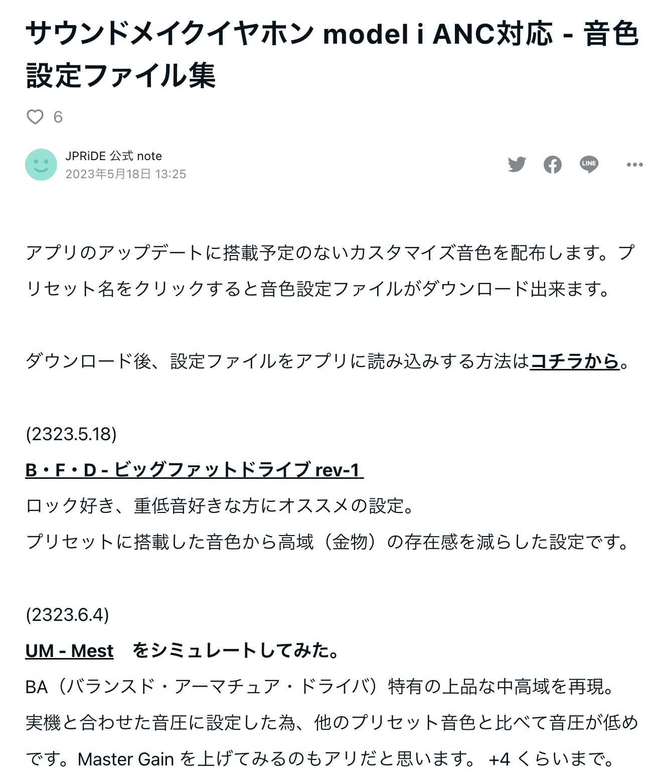 各種SNS上でも、ハイエンドイヤホンのシミュレート設定などの音色設定ファイルの公開・配布を行っています。