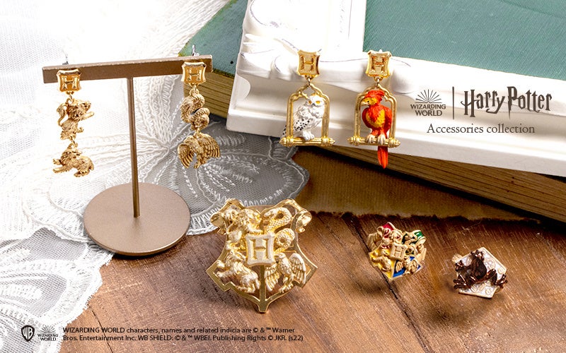 ホグワーツ魔法魔術学校の校章をモチーフにしたシリーズや「ハリー・ポッター」シリーズに登場するシロフクロウのヘドウィグと、アルバス・ダンブルドアの不死鳥フォークスをモチーフにしたアイテム。魔法界で子供たちに大人気のチョコレート菓子『カエルチョコレート』をモチーフにしたリングなど全5種が登場!
