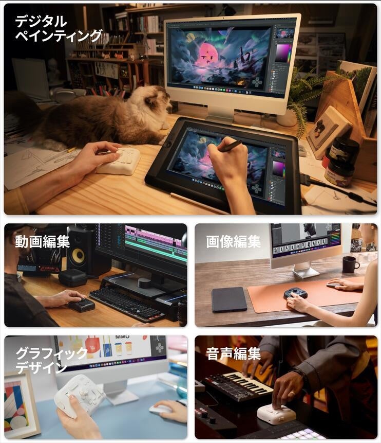 世界で人気のアメリカ左手デバイスTourBoxは初めてのイラストレーター、カメラマン、編集者などと言ったデジタルクリエイター向けの汎用型コントローラーです。ブラシのコントロール、画面の回転と拡大縮小から、動画と音楽の編集、カラーグレーディングまで、様々なパラメーター調整とツール切り替えが直感かつ正確的に操作できます。