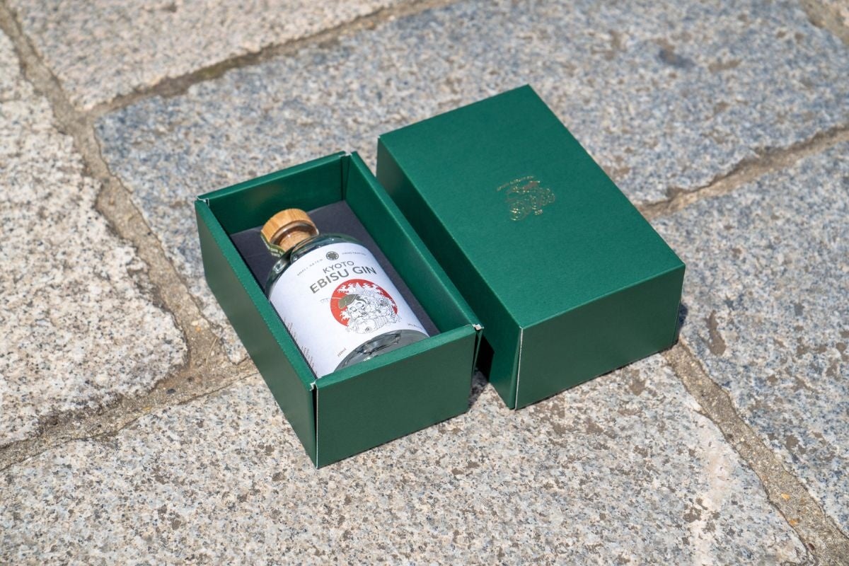 ”贈り主がカッコ付く” EBISU GINギフトボックス。大切な方の商売繁盛とお幸せをお祈りした贈り物。