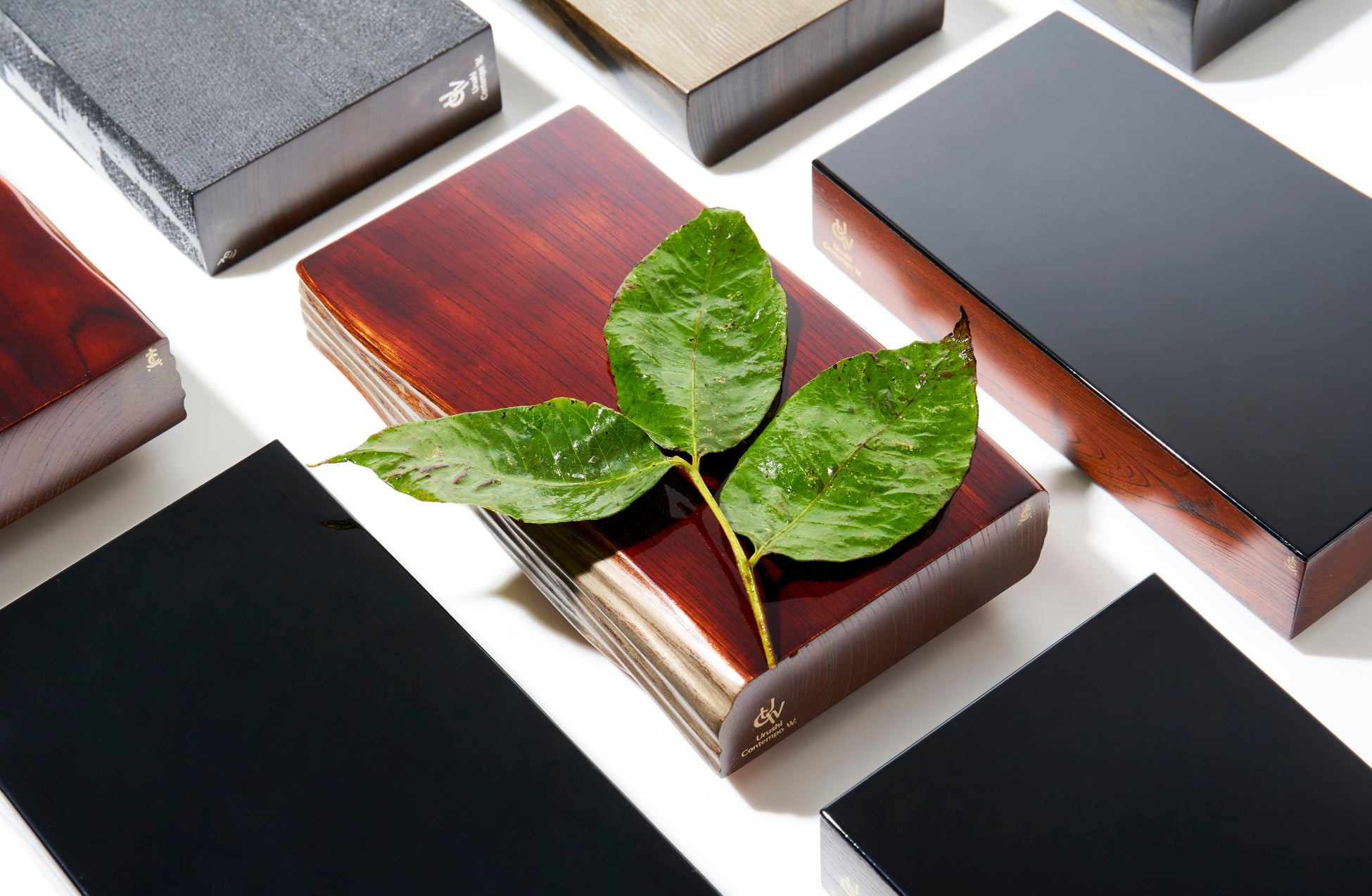 Urushi Art: Mayumi Onagi, Naoko Kusuda, Shinki Urushi Kobo, Yohko Toda, Project Owner: #RussellerOmakase Material: Urushi natural lacquer, Keyaki wood.