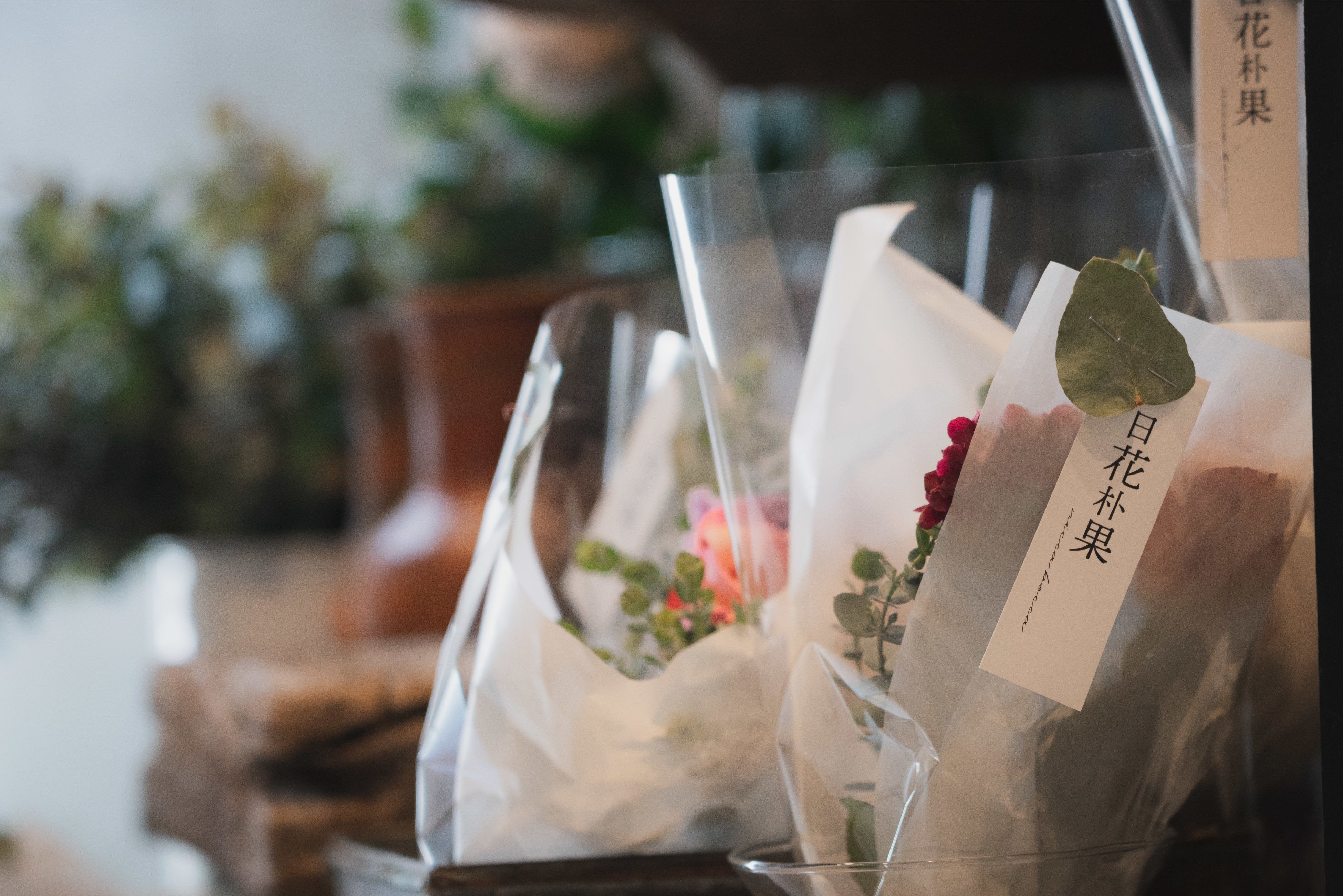お菓子も花も、『日常が少し豊かな気持ちになれるもの』という共通項があるとライフイズパティシエは考えます。お菓子とお花、その両方を提供できるパティスリー。お客様のその時々の気分に合わせて、お菓子だけでも、お花だけでも、あるいは大切な人へ心のこもったギフトとして、お菓子とお花をセットにした贈り物も。日花朴果(にっかぼっか)は季節の移ろいを大切に、日々の暮らしや気持ちに寄り添う花屋です。
